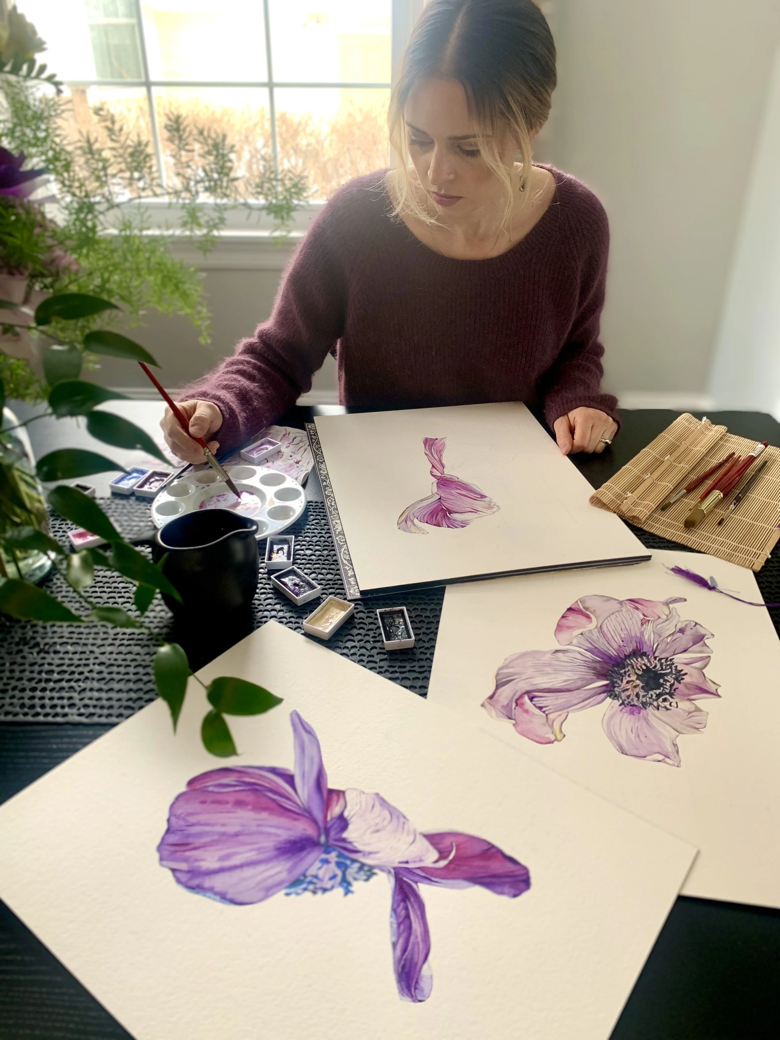 A skilled watercolor artist, Sondra uses painting as a creative outlet that continually informs her design work. Working fluidly with watercolor sharpens her intuitive understanding of color, tone, and composition, allowing her to approach palettes in an innovative, expressive, and artful way. In 2019, she was named a finalist in the inaugural Hermès International scarf design competition, Le Grand Prix du Carré Hermès. This artistic practice carries into her interiors through vibrancy, layered textures, and sculptural moments.