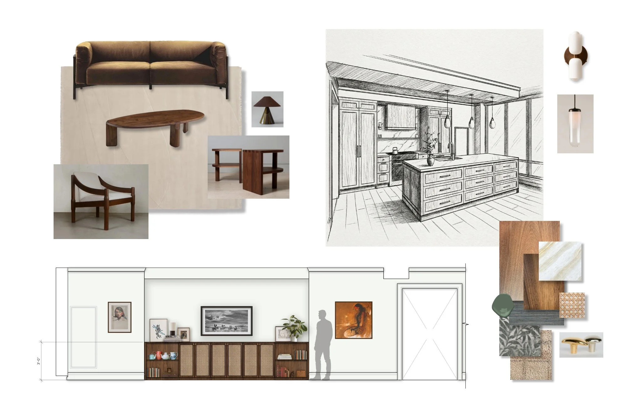 Custom millwork maximizes compact spaces while showcasing treasured family heirlooms. Tranquil tones and natural textures evoke calm and comfort. The integration of organic forms infuses softness and subtle movement through the visual intrigue of irregular geometries.